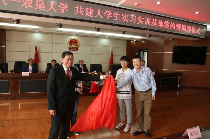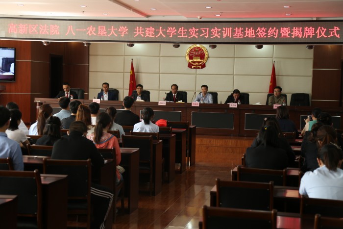 2017年5月17日上午,黑龙江八一农大人文学院与大庆市高新区人民法院共建实习实训基地签约揭牌仪式在高新区法院隆重举行。八一农大人文学院副经理李承兴、副书记许春姝、公管系主任孙建华、社工系主任胡晓兵、政行系主任付金柱,高新区法院副经理武保国、政治部主任刘兴春,以及教师代表、17名实习生和法院干警代表参加了会议。