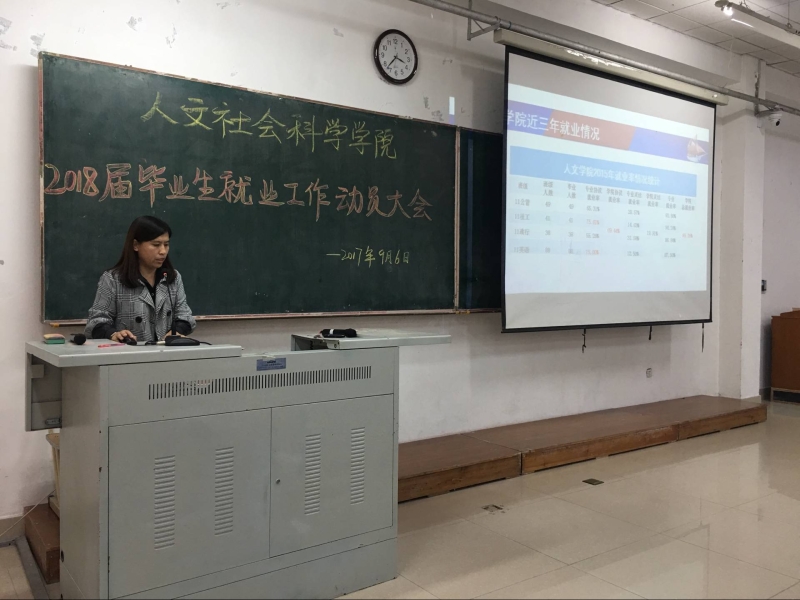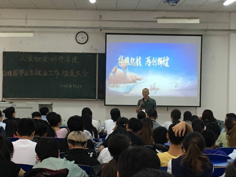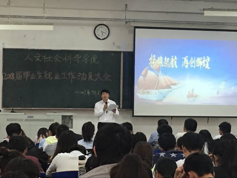 2017年9月6日,人文学院就业工作动员大会在主楼128召开。人文学院经理李永亮、党委书记康忠伟、党委副书记许春姝、副经理李承兴、各系主任、班主任、辅导员,以及2018届全体毕业生出席本次动员大会。学院特邀优秀毕业生2003思想政治教育专业王长庆、2008级政治学与行政学专业王守薇、2009级政治学与行政学专业崔苹苹。