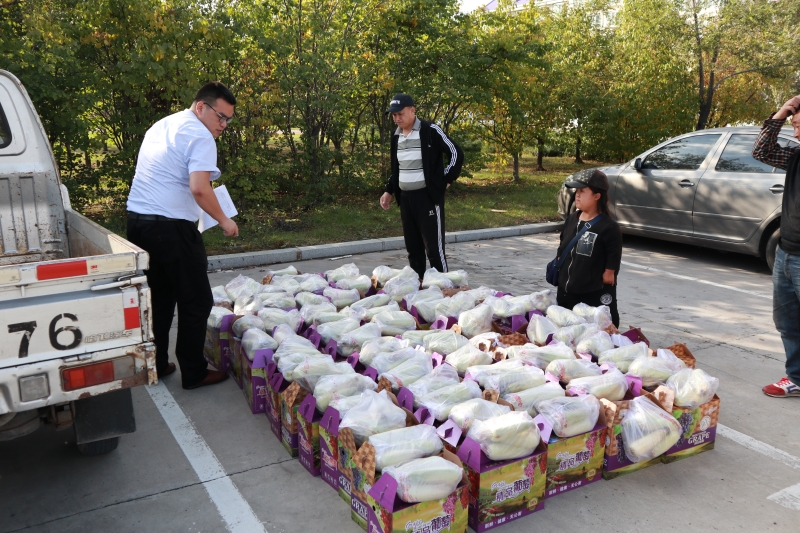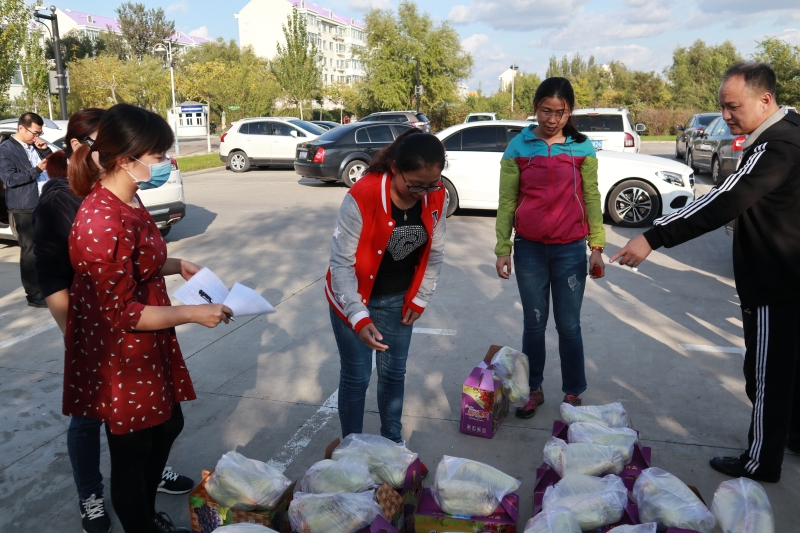 19日一早,院工会委员前往大同区采摘园亲自为员工挑选采摘新鲜葡萄和玉米,经过近一天的忙碌,下午3时,拉着葡萄和玉米的的两台小货车驶入了公司小停车场,在场的工会委员们进入到了紧张的卸货、清点,发放工作中,公司教工陆续前往发放地点领取节日慰问品。