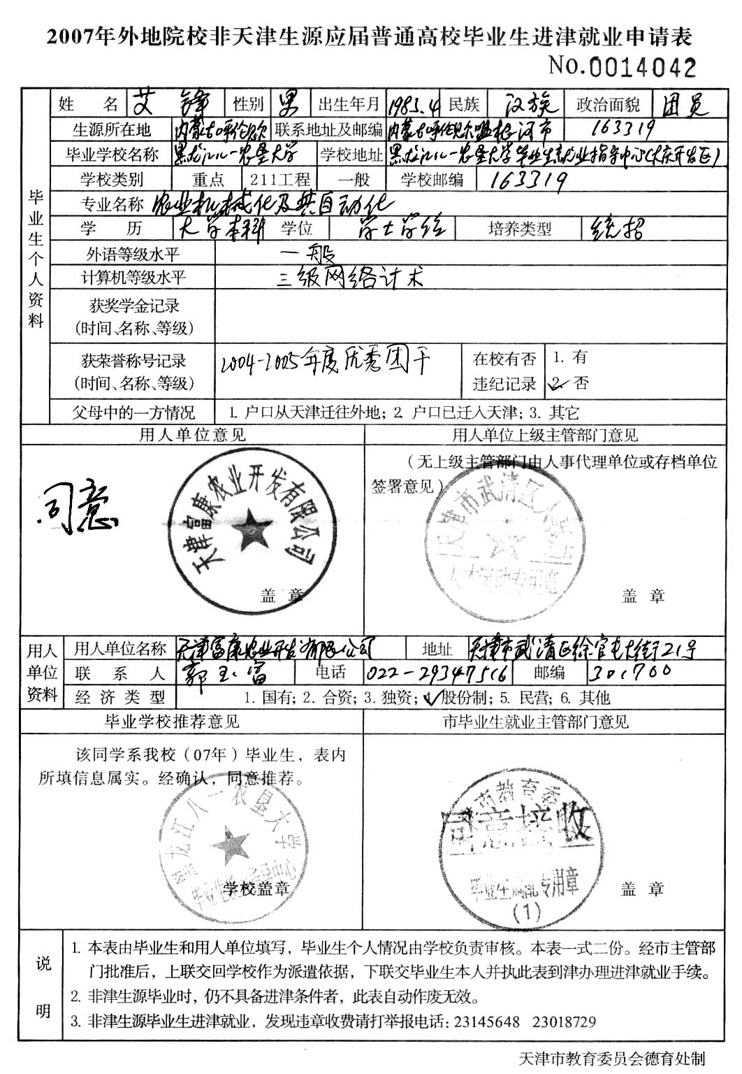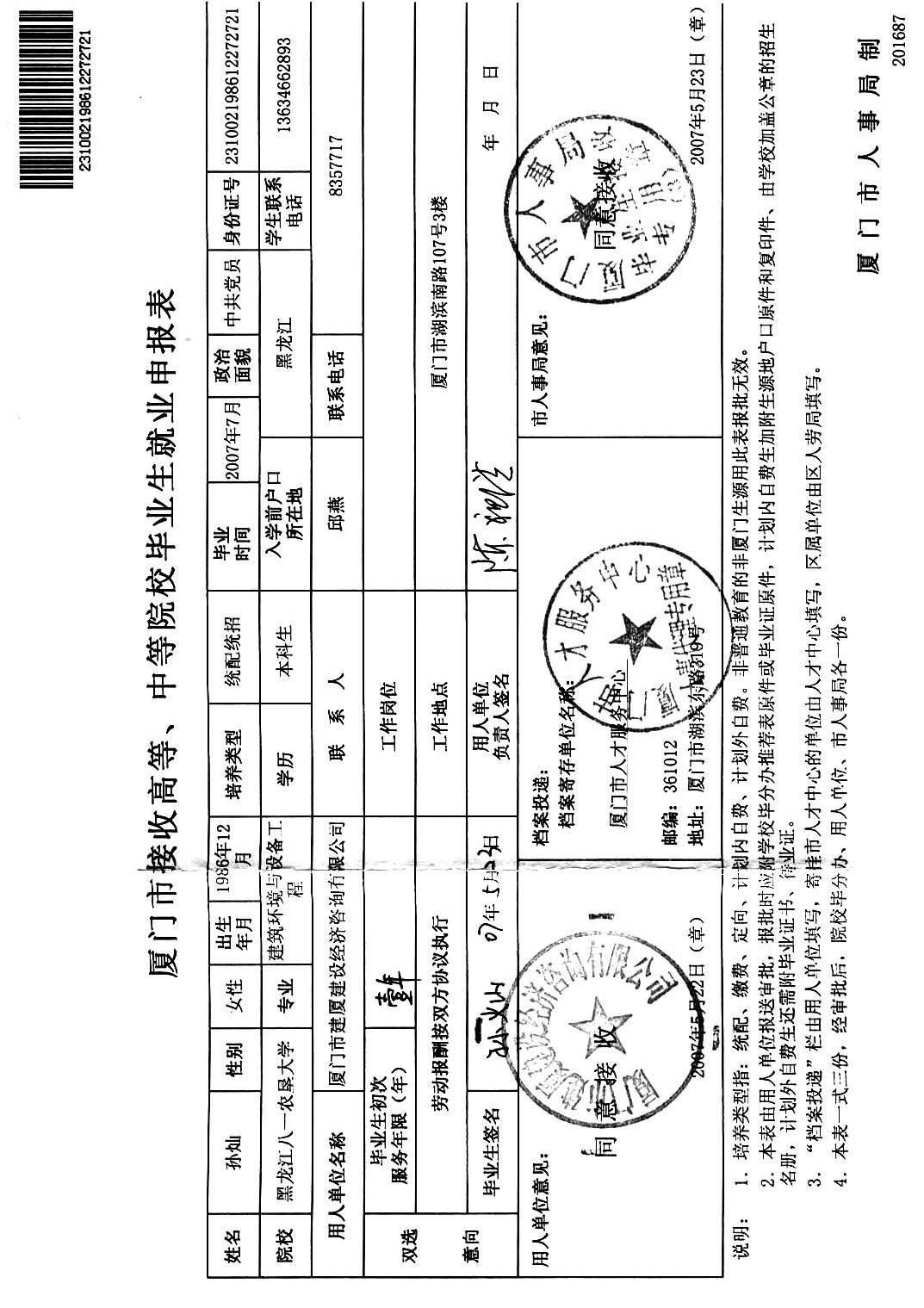 1、本人自然情况,包括姓名、性别、出生年月、民族、政治面貌、籍贯、毕业学校、系别、主修专业、辅修专业、学历、学位、毕业时间、身体状况、特长、联系方式等;