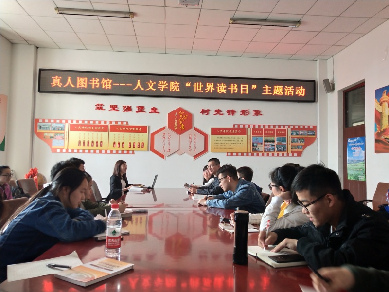4月23日,人文学院在主楼1027举行真人图书馆---“世界读书日”主题活动”,邀请中文教研室主任田恩铭、英语系主任邹晓伟与同学们进行读书分享,50多名自愿报名员工参加主题活动。