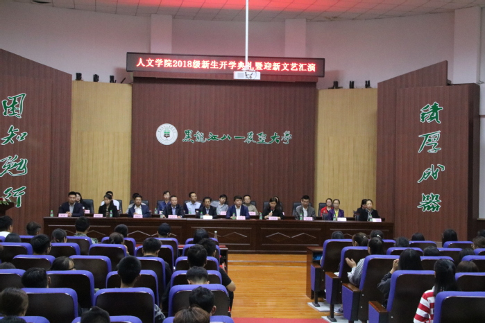 2018年9月20日晚6:30,,人文学院2018级新生开学典礼暨迎新文艺汇演在老员工活动中心106举行。学院领导班子、系部室主任、教师代表、综合办、学工办、新生班主任、2018级新生、部分老生代表及员工代表参加。开学典礼由党委副书记许春姝主持。