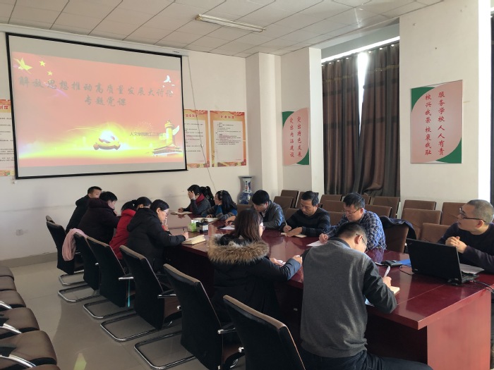 12月24日, 人文学院教工二支部在主楼1027开展解放思想推动高质量发展大讨论专题党课。首先,结合庆祝改革开放40年纪念大会,支部书记周书涛阐述了解放思想对我国改革开放的重要意义,并指出解放思想永无止境。随后,向大家传达了董广芝书记在解放思想推动高质量发展大讨论动员会上的主要讲话内容。
