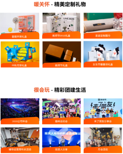 六险一金、13薪、餐补500/月、另有综合补助600元/月(仅签订正式劳动合同的员工享有,实习生取得毕业证之后即可享有)、年度体检、免费健身房、游泳池、每日下午茶、周年礼品、节日礼品、餐饮补贴、团建基金、加班企业用车、教资免费线上培训课程、子女报班优惠