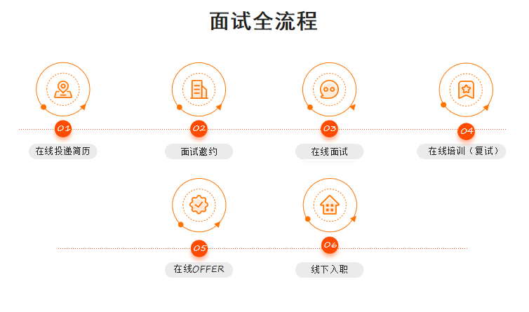 面试安排:投递简历-电话沟通安排线上初面-线上培训-终审-最终确定时间线下入职