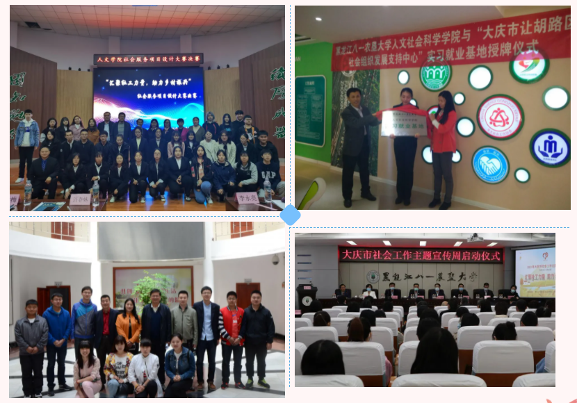 社会工作专业建设以龙江学者青年学者领衔的社会工作理论团队、社会治理团队、社区建设与发展团队。坚持理论联系实际,改革完善实践教学环节,重视员工实践技能、动手能力和创新素质的培养。专业定期举办社工文化节。在大庆、北京、深圳等十余个城市建立了20余个专业实习基地,拟在大庆市大同区、林甸建设农村社会工作专业实习基地,满足员工在社会工作机构和企事业行政部门开展专业实习和毕业实习的需要。