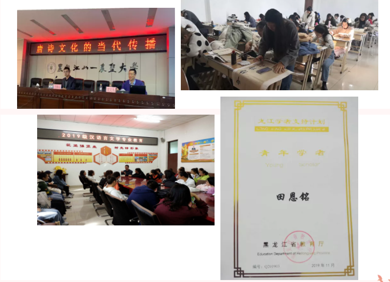 文化领域里的耕耘,要对得住绵延五千年的先人遗泽,更要配得上纵横九万里,创造奇迹的大国气象。我们志在传承中华民族传统文化,展现汉语特有之魅力。汉语言文学专业成立于2019年,现有专兼职教师16人,教授3人、副教授6人、讲师4人、助教3人,其中博士7人、硕士8人。教师获得教育部全国优秀教师、黑龙江省教学名师、黑龙江省首届十佳阅读推广人、龙江学者青年学者、校级教学名师、校级教学新秀、校优秀教师等荣誉和称号。主持省部级以上教研课题16项、教科研获奖24项;发表教科研论文160余篇、学术著作14部、主编出版规划教材7部、建有省级精品视频公开课1门。