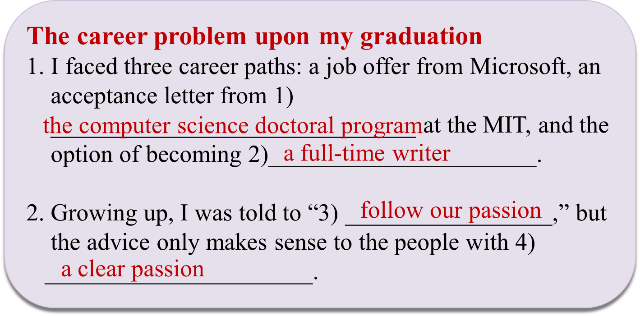 Text B (iExplore 2):Follow a career passion? Let it follow you (职业选择问题)