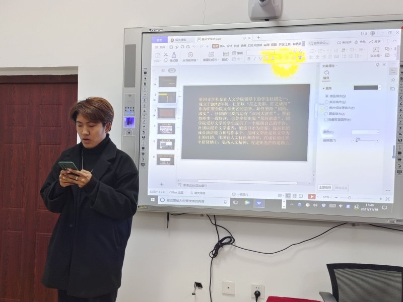 为更好的宣传人文学院各社团,丰富同学们的课余生活,给同学们提供一个展现自我发挥个人特长,培养兴趣爱好的机会。11月19日,于主楼129教室与线上同步开展社团招新宣讲与辩论赛。