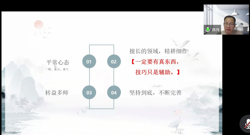 韩伟教授以自身国家社会科学基金项目的成功申报过程为样例,从“前期准备”“选题规则”“申请书撰写”三个方面分享了自己的体会。首先分析了如何进行宏观的总体设计,进行想法观点的创新,提醒老师们一定不能犯常识性错误,在细节上见精彩。通过解读国家社科指南与大家分享了 “国家社科基金选题规范与技巧”。韩教授从选题的重要性、常见难题、选题原则、如何选题、选题技巧展开剖析,旁征博引,向老师们传授了国家社科基金的申报注意事项与经验。韩教授指出,选题要立足党和国家事业发展需要,聚焦社会发展中具有全局性、战略性和前瞻性的重大理论与实践问题,力求具有现实性、针对性和较强的决策参考价值。其次,韩教授系统、细致、深入地从选题、研究现状、研究内容、研究创新等方面讲述了项目申报书的撰写方法和注意事项,鼓励科研人员结合自身优势努力完成申请书的撰写,争取在未来的申报中取得佳绩。