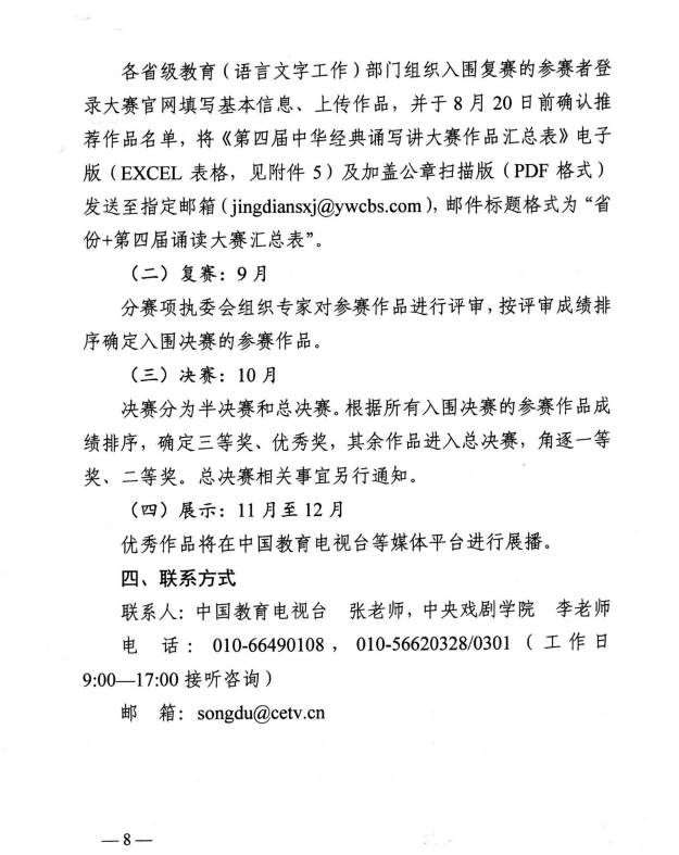 1.第四届中华经典诵写讲大赛“诵读中国”经典诵读大赛方案
