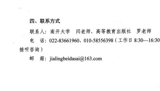 (六)联系方式:大赛执委会 赵老师、井老师,010-65256713(工作日8:30—16:30接听咨询),邮箱jingdiansxj@ywcbs.com。