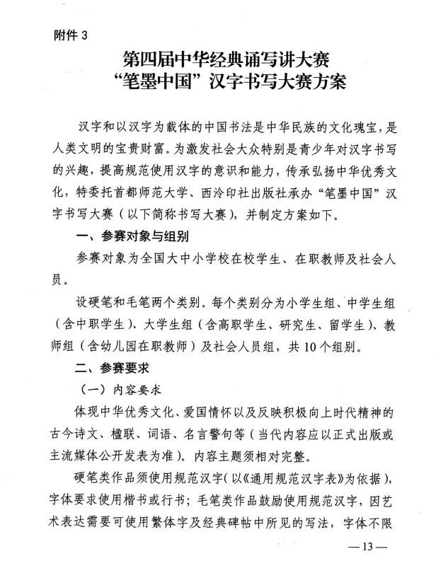 3.第四届中华经典诵写讲大赛“笔墨中国”汉字书写大赛方案