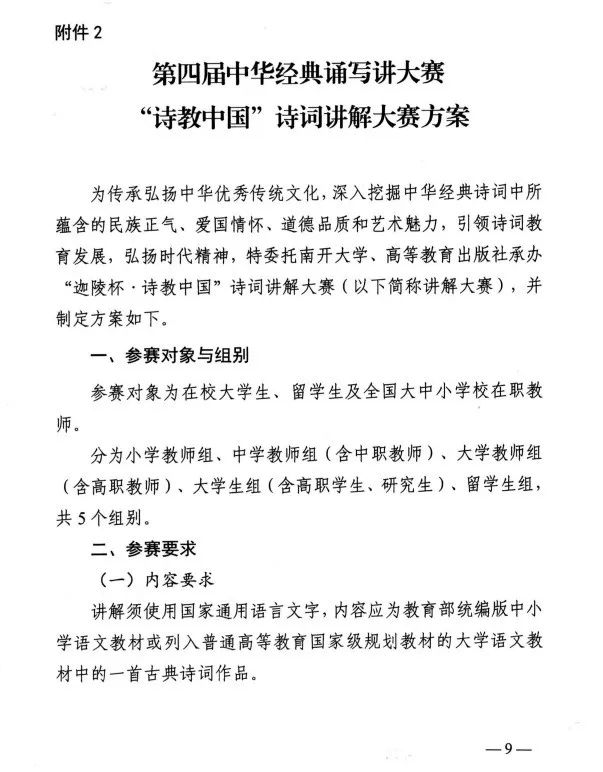2.第四届中华经典诵写讲大赛“诗教中国”诗词讲解大赛方案