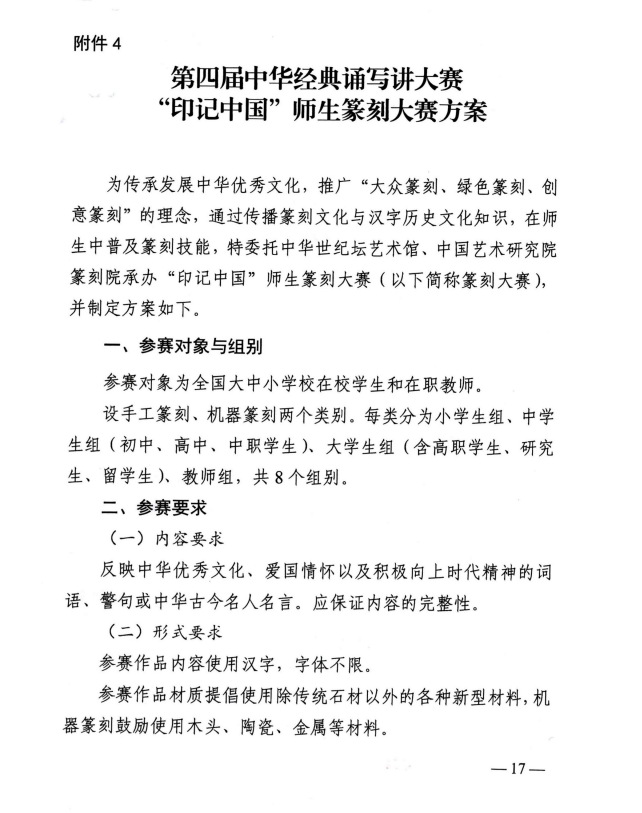 4.第四届中华经典诵写讲大赛“印记中国”师生篆刻大赛方案