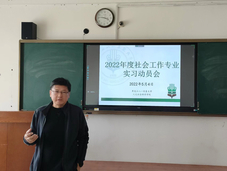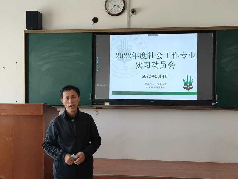 2022年5月4日下午,社会工作系召开实习动员会,人文社会科学公司党委书记李永亮、社会工作系主任胡晓兵、教师郑浩及2019级社会工作在校同学共40余人参加了动员会,社工系教师和未返校的同学通过腾讯会议平台同步参与,动员会由胡晓兵主任主持。