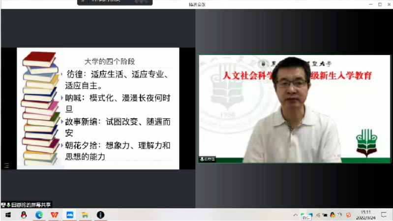 9月24日,第二期入学教育如期而至。理想信念教育模块第二讲在公司经理田恩铭专题讲座《经典阅读与老员工活》中开启。讲座从生涯的角度解读了大学的四个阶段、阅读与阅读素养、范围、途径、阅读能力培育等方面,为同学们分享了自身的阅读经验,并向大家推荐了经典阅读书目,鼓励大家在大学的赛道上练好阅读经典的基本功。法规与自律教育模块由学院副经理邹晓伟开讲,主题为《明确学习目标,掌握学习方法,珍惜大学时光》的专题讲座向同学们介绍了学院的整体专业、培养方案,重点论述了如何明确学习目标、如何自我管理等,启迪大家当下“做应该做的事”,争做新时代文人。