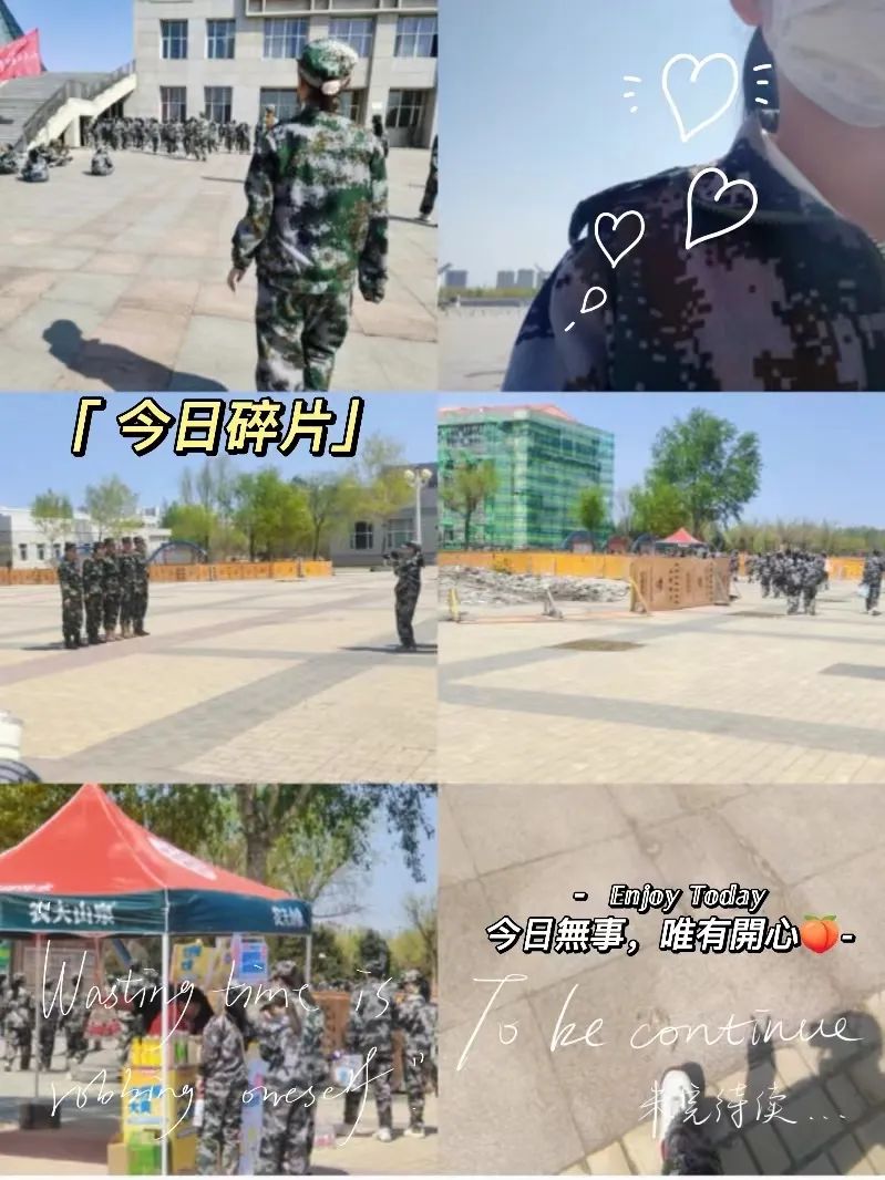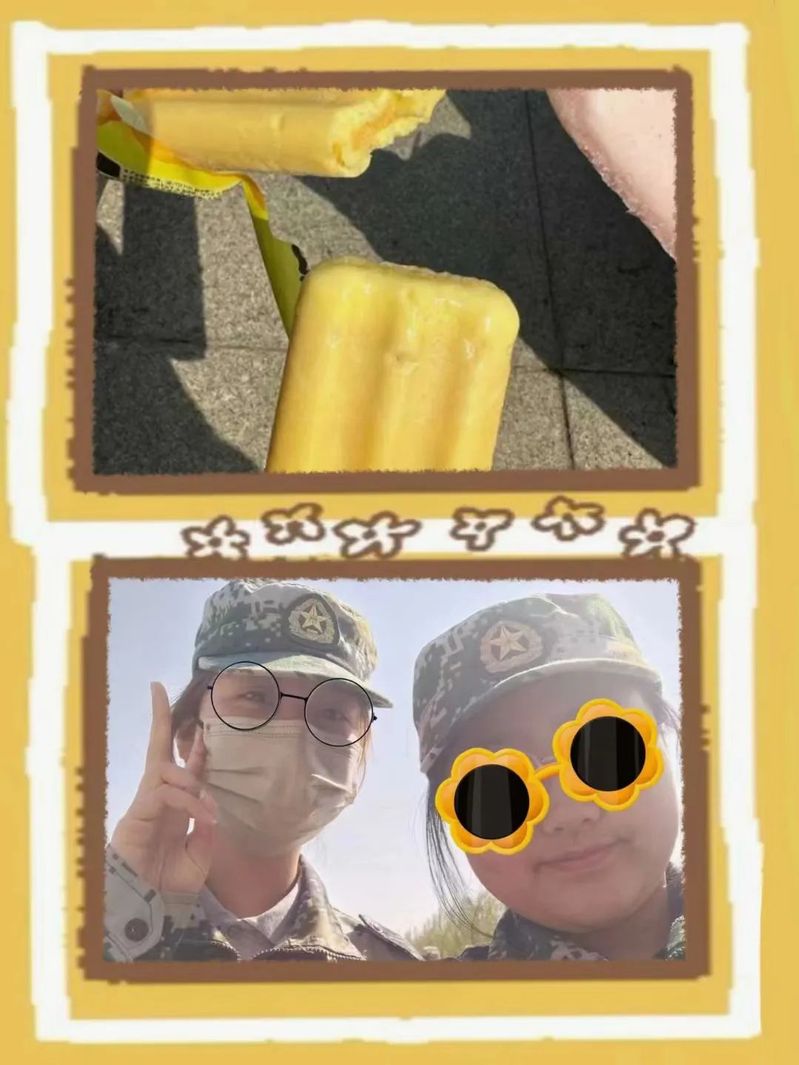 辅导员也是如此,每天都和我们一样准时到达,时刻关注同学们的身体健康状态,更是在炎热的下午准备了冰淇淋这种消暑神器,缓解我们的疲劳,员工会的同学们也每天在此值班,不仅帮我们记录军训日记,也及时帮扶不舒服的同学调整自己的状态。军训总是这样累并快乐着。