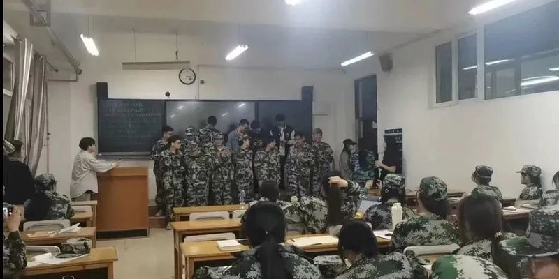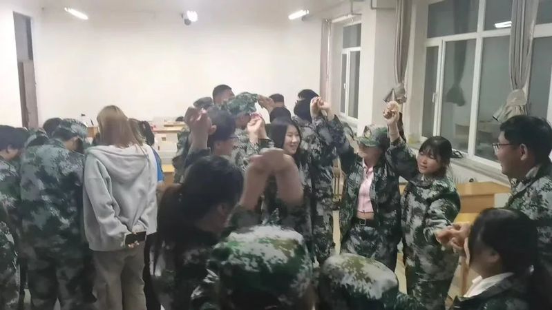 军姿时间结束以后,教官叫我们原地放松一会。在身体高度紧绷之后,这短暂放松时间显得弥足珍贵。