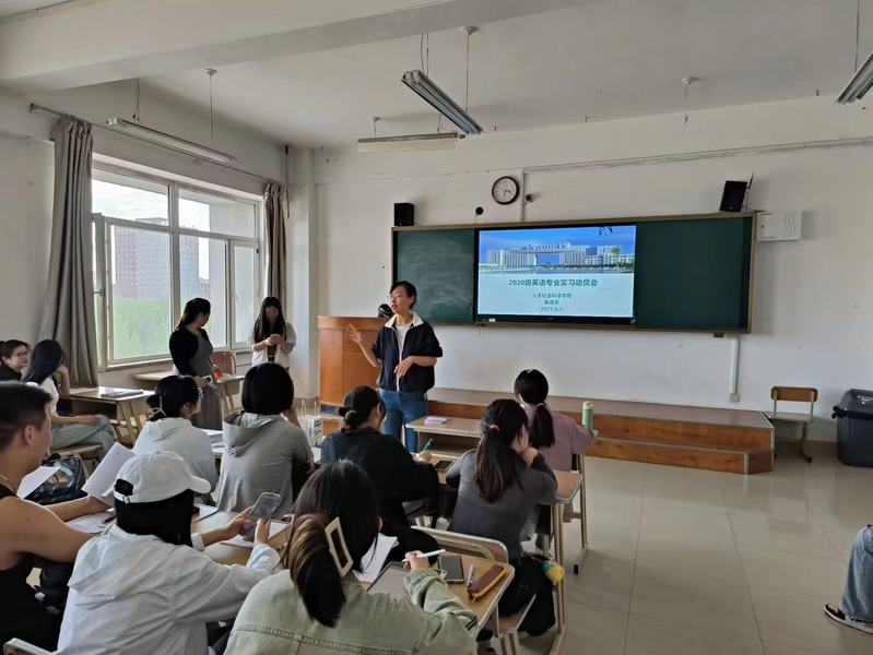 本次专业实习将派员工前往龙凤五所中学进行实习,这是难得的英语教育实践机会,甄琛老师介绍了实习任务、实习安排、实习要求,嘱咐同学们虚心向指导教师学习,积极沟通,遵守学校规章制度。带队教师历晓寒和刘晶波叮嘱同学们应衣着得体,端正态度,在实习期间按照实习学校的课时安排准时到达实习地点。