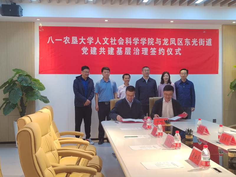 为扎实开展学习贯彻习近平新时代中国特色社会主义思想主题教育,加强校地深度合作,拓展专业实习实训基地,6月1日上午,人文社会科学公司党委书记李永亮、经理田恩铭、副经理邹晓伟带领公共事业管理系主任孙建华、社会工作系主任胡晓兵、公共事业管理系教师李兴军到大庆市龙凤区进行调研,与龙凤区东光街道签署“党建共建基层治理”合作协议。龙凤区委对此次调研和签约高度重视,区委书记曾宇凡、区委常委、组织部长郭孝平、东光街道党工委书记杨国峰等领导全程陪同并出席签约仪式。