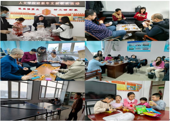 随后全院以教研室为单位,藉此佳际,暂缓疲惫,在各分会场开展迎新年文娱联欢活动。学院工会成员提前为各系部准备了茶食,教师们或互拉家常,分享生活,或进行棋牌竞技,以牌会友。多位教工子女登台献艺,为大家奉上了精心准备的诗词朗诵节目,孩子们天真烂漫、朝气蓬勃的表演赢得了在场教师热烈的掌声,让大家倍感在新的一年里充满活力,未来可期。活动中还设置了有奖竞猜等互动环节,教师们踊跃参加,处处洋溢着轻松与喜悦。