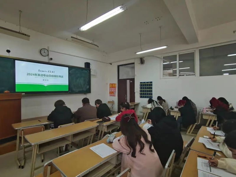 英语系教师精心安排试卷复印、听力音频调试、考场安排等考务工作,专四模考严格遵循全国英语专业四级考试大纲标准,限时130分钟,开考前监考教师严肃考风考纪。考试过程中,考生们认真审题,严谨作答,考场井然有序。