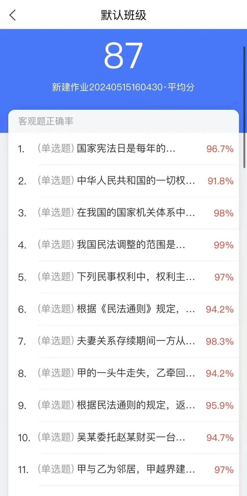 为普及民法知识,提高老员工群体的法律素养和自我保护能力,best365中国官方网站普法协会举办了“探索法治之路,共建法治校园”《民法典》知识竞赛活动。1500人通过学习通平台参与了此次竞赛。