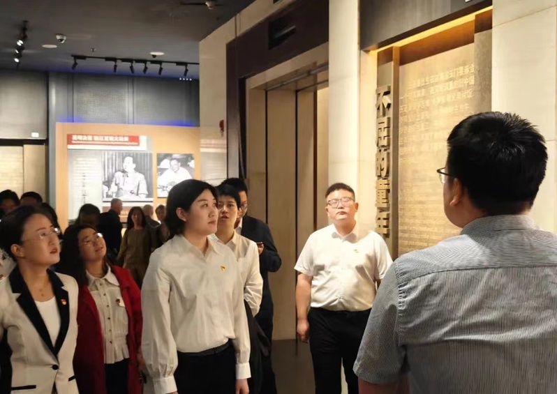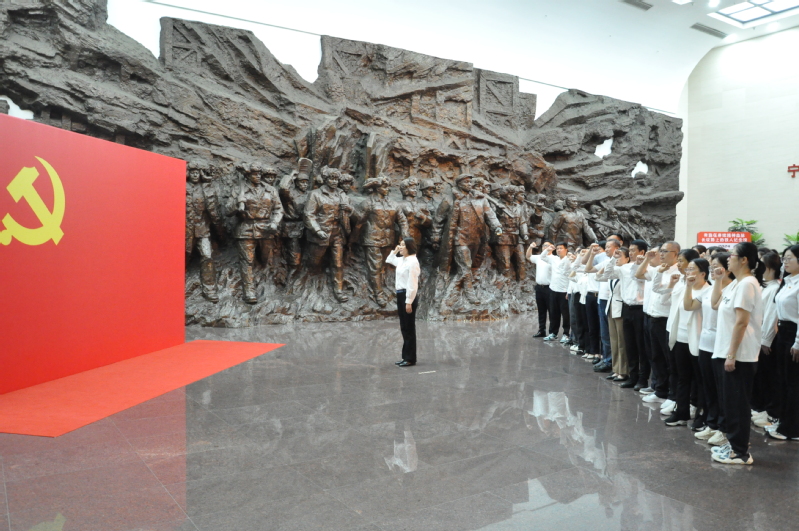 “我志愿加入中国共产党,拥护党的纲领,遵守党的章程,履行党员义务,执行党的决定……”参观结束后,在刘佳丽的带领下,面对鲜红的党旗,高举右拳,党员们重温了入党誓词,铮铮誓言,坚定有力,提醒着每位党员不忘初心,开拓进取,发挥党员的先进性和先锋模范作用。