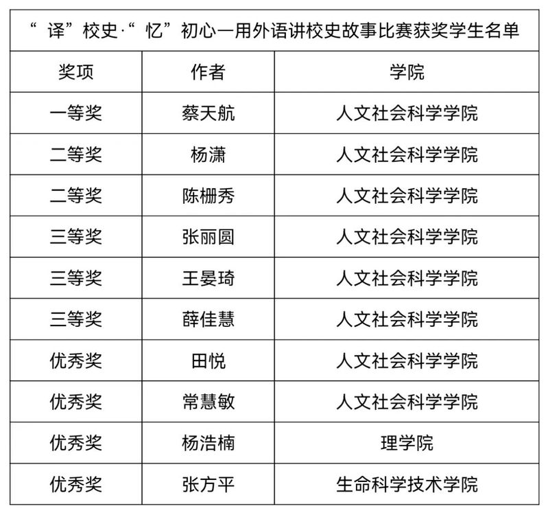 译”校史·“忆”初心—用外语讲校史故事一等奖及获聘为国际交流员工志愿者代表风采展示。