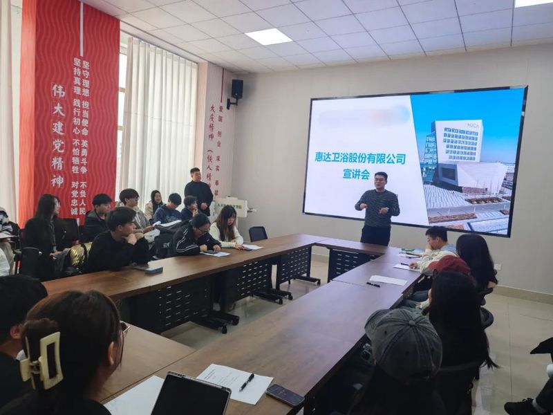 论坛结束后,惠达卫浴股份有限公司总经理、员工樊杰进行了专场招聘宣讲,2025届同学50余名参加宣讲会,其中10余名员工投递了简历,等待面试。