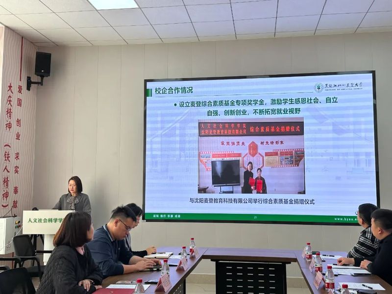 为进一步加强校企合作,推动校企协同育人取得新成果,实现毕业生高质量充分就业,按照“阳光就业计划”部署安排,10月26日,学院举办2024年校企合作论坛。论坛邀请惠达卫浴股份有限公司、大庆三桥英语教育学校、巴彦县硕乾健康咨询有限公司、沈阳麦登教育科技有限公司、锋云电子商务有限公司等7家企业参加。公司党委书记刘佳丽、系主任、班主任、就业辅导员参加论坛,论坛由党委副书记段丽莉主持。