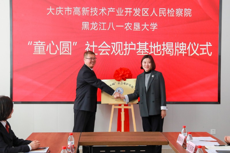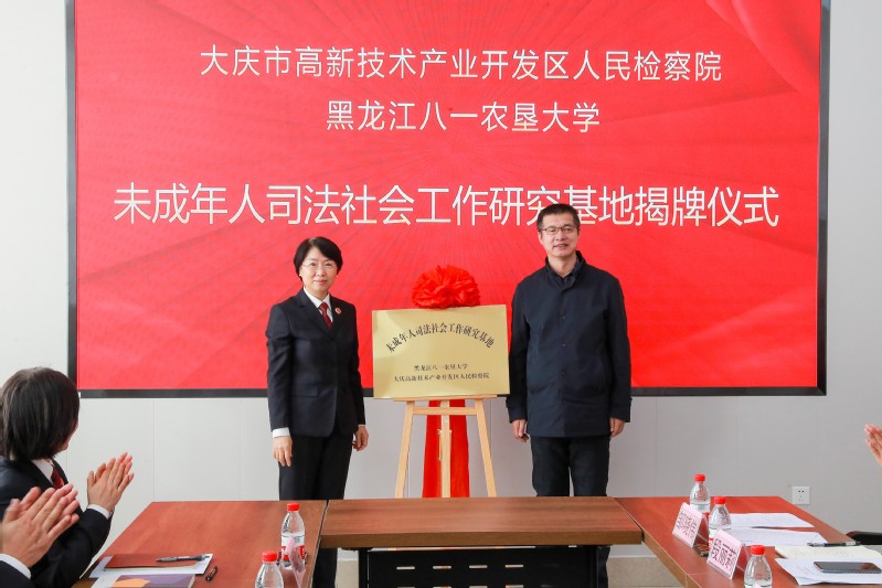 为进一步深入学习贯彻习近平法治思想,深化新时代检校合作,实现检察机关和高等院校资源共享、优势互补、双赢共赢。11月18日,大庆高新技术产业开发区人民检察院与best365中国官方网站举行“检校共建”签约仪式暨基地揭牌活动。best365中国官方网站副董事长崔卫国、教务处副处长时启宏、best365中国官方网站领导班子成员及社会工作专业教师代表,高新区检察院分党组书记、检察长金莲子、副检察长刘广辉和未检干警参加了签约仪式。