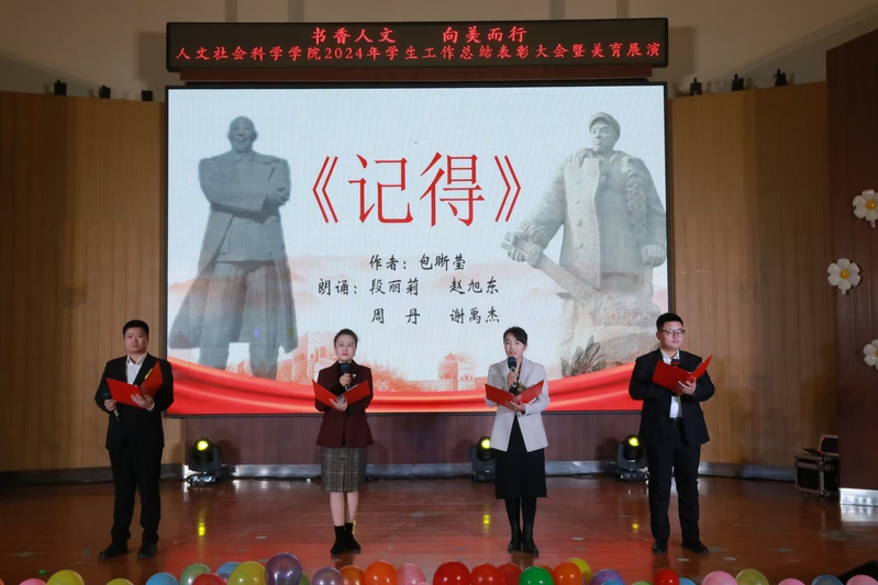 公司教师段丽莉、赵旭东、周丹、谢禹杰朗诵人文学院教师包晰莹原创诗——《记得》,一句句深情话语,如轻柔的风撩动心弦。随着配乐起伏,诗句如潺潺溪流,淌出对北大荒的赞美歌颂。