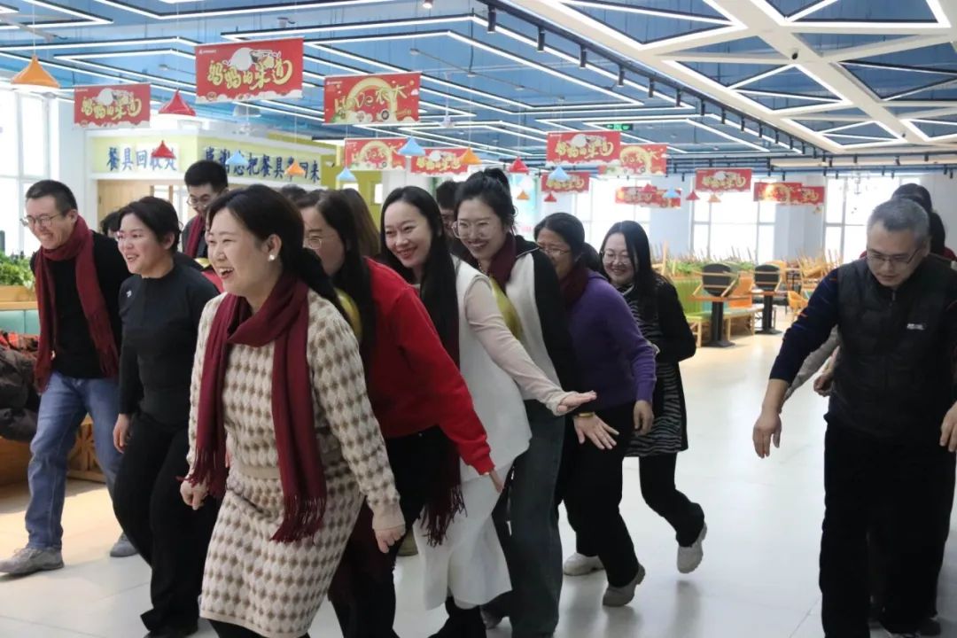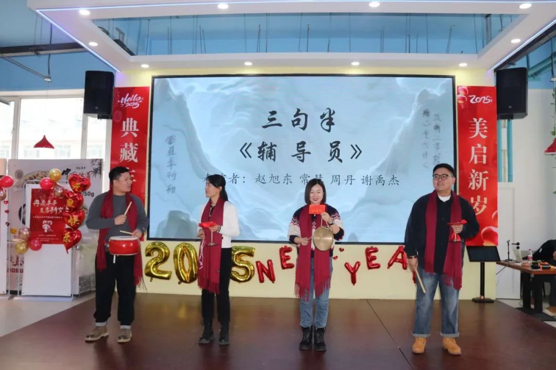 公司处级领导用一首合唱歌曲《不要慌太阳下山有月光》为全院老师加油打气。在歌曲《东北民谣》的旋律里体验东北风情、在三句半《辅导员》中感受辛酸不易、在小合唱《雪绒花》中体验冬日温情,一场久违的听觉盛宴,一场愉悦的新年旅行。游戏环节更是充满惊喜,在第一个互动游戏“夹球奔跑”中,每组队员齐心协力、争分夺秒,既展现出合作精神,又表明了共同奔赴未来的信心。