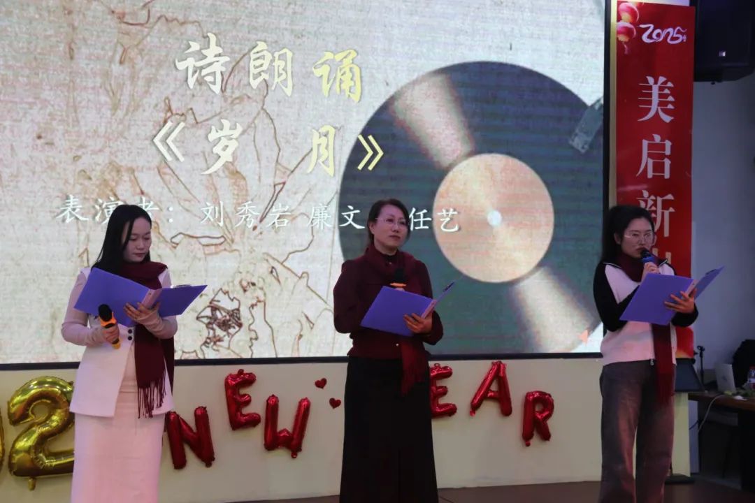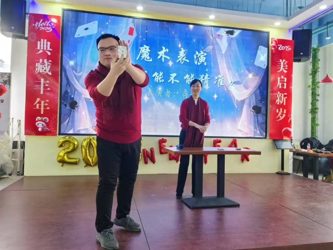 粤语独唱《友情岁月》让全场惊喜连连、诗朗诵《岁月》带领大家沉淀时光、男女对唱《这世界那么多人》带我们感恩相遇、最后的集体大合唱《明天会更好》伴我们在歌声与欢笑中满怀憧憬、砥砺前行。谢幕之际,最美之时,联欢会在喜庆欢愉的氛围中圆满结束。