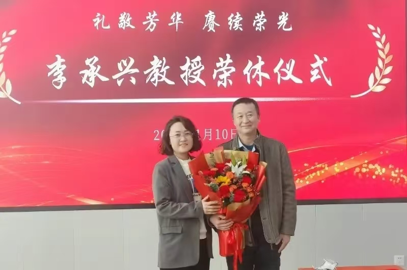 仪式伊始,一段精心制作的员工祝福视频随即播放,句句真挚的话语,一首《送别》员工口琴独奏令全场十分动容,这些祝福承载着同学们对承兴教授的敬爱与感恩,展现了师生间深厚的情谊。随后,段丽莉书记代表学工同仁及全体员工向承兴教授献上鲜花,感谢他多年来的辛勤付出和悉心教导。