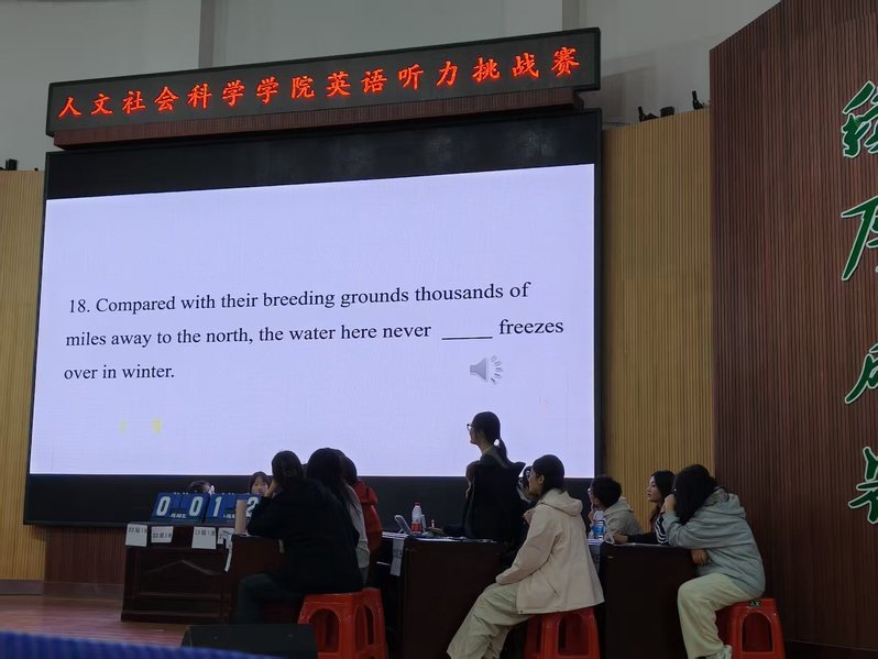 4月22日下午,学院英语社团在老员工活动中心106成功举办了英语听力团队挑战赛,本次比赛采用“专业竞技+趣味互动”模式,英语专业2022级至2024级共6支队伍参与竞赛。英语系主任蒋莹、英语系教师周树涛、李冬艳受邀担任评委。
