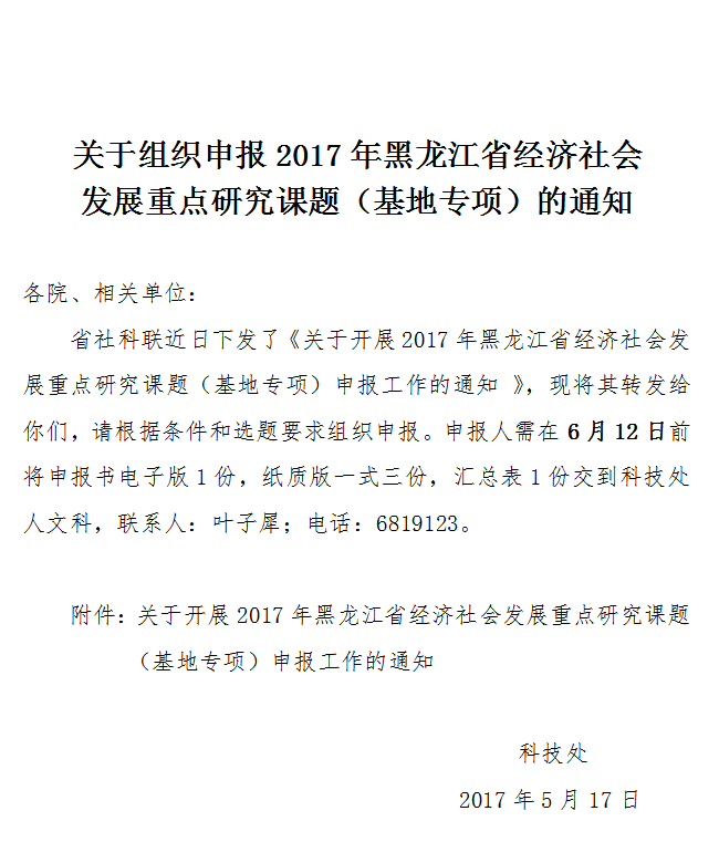 关于开展2017年黑龙江省经济社会发展重点研究课题(基地专项)申...
